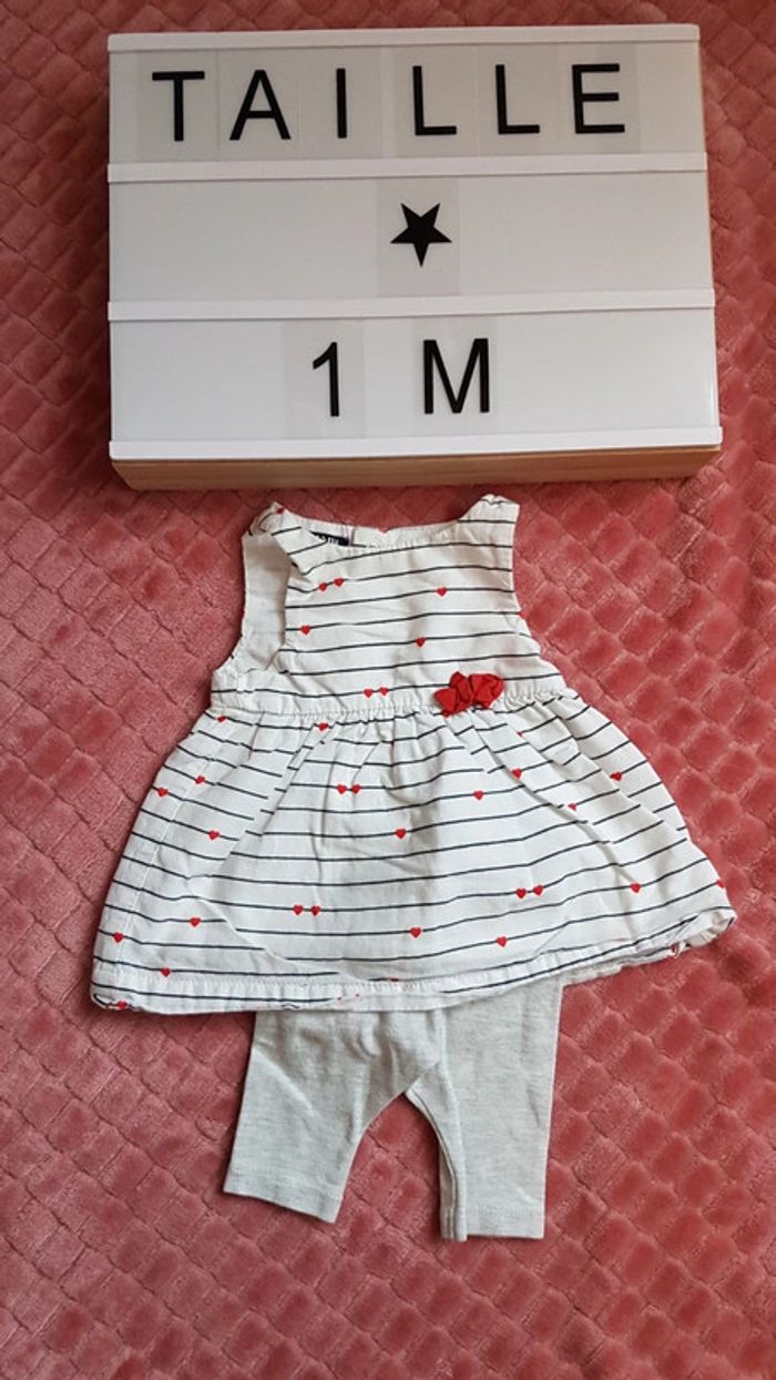 Vends un ensemble composé d'une robe marinière et d un legging Taille 1 mois Marque Kiabi Idéal pour le printemps