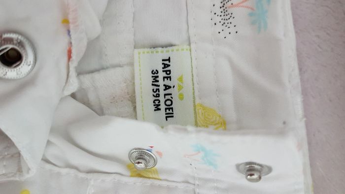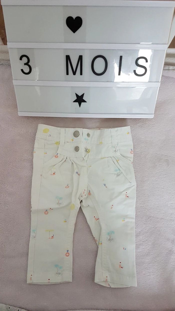 Pantalon blanc bébé fille 3 mois. Coloris blanc. Fermeture 2 pressions. Marque tape à l oeil. Bon état.