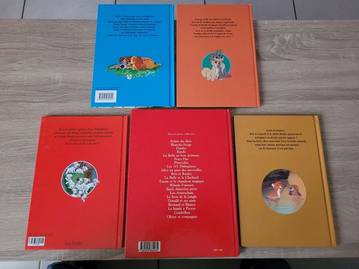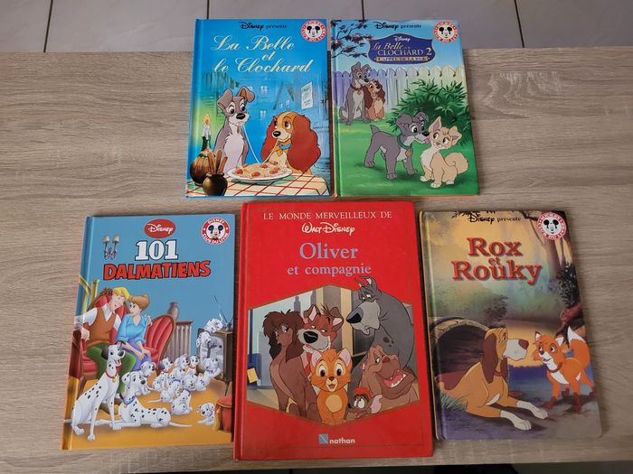 Vend lot de 5 livres Disney en bon état juste des signes d'usures et des écritures sur une page (voir photos). Lot comprenant La Belle et le Clochard 1 et 2, Les 101 Dalmatiens, Oliver et compagnie ainsi que Rox et Rouky. Vendu tel que sur la publication.