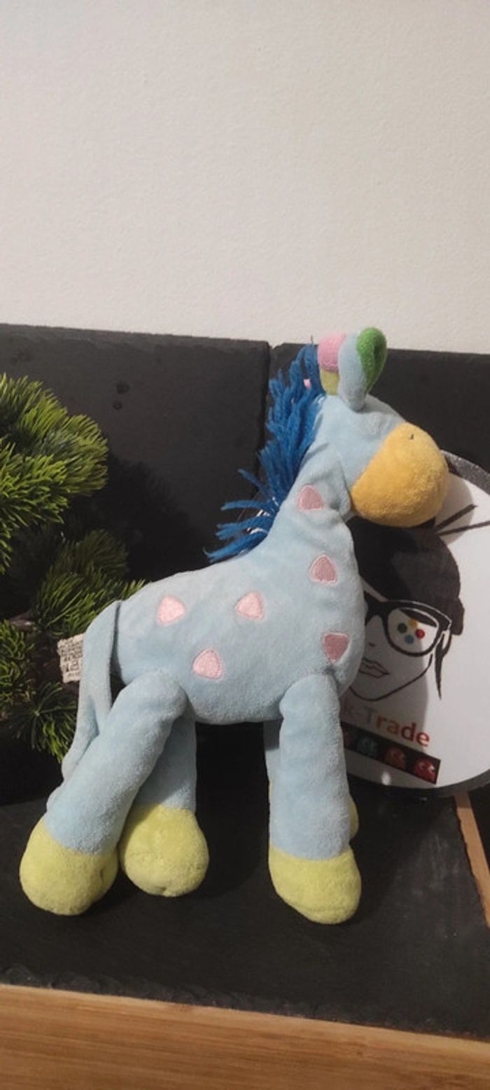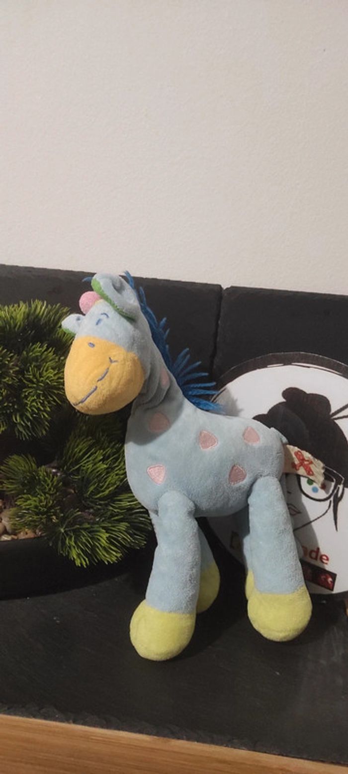 Girafe nicotoy peluche doudou bleu rose vert laine Triangle Bruissant Jaune - photo numéro 1
