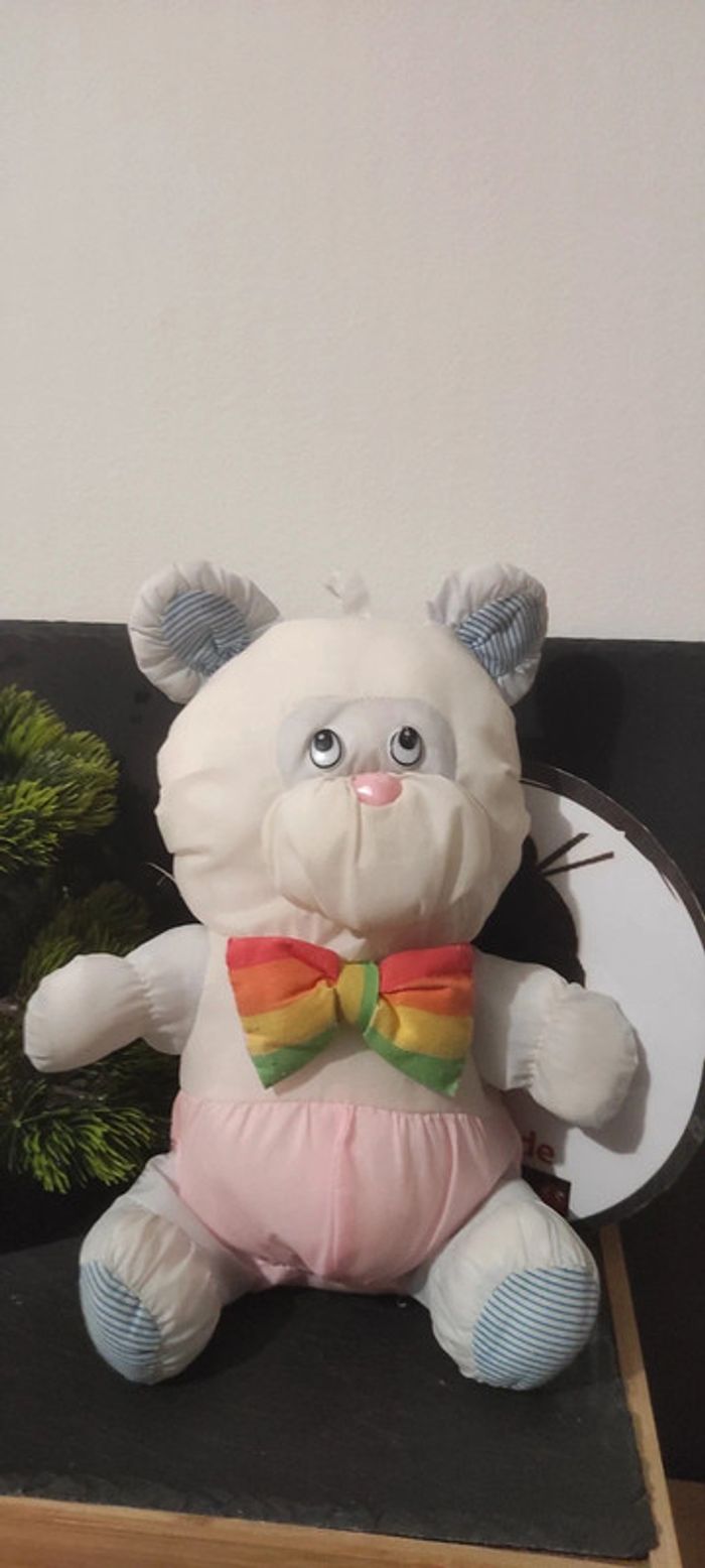peluche ours blanc rose toile noeud papillon coloré doudou ourson style puffalump - photo numéro 1