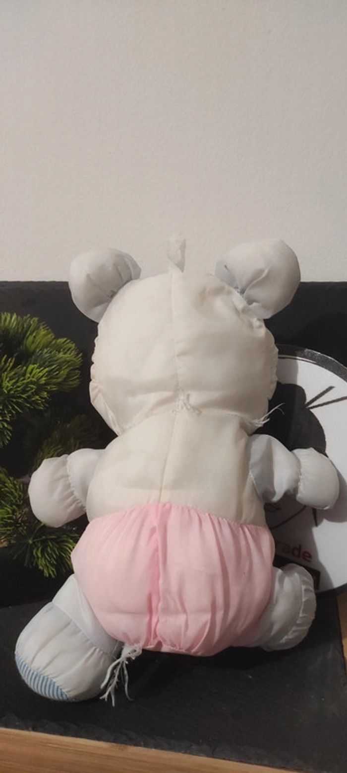 peluche ours blanc rose toile noeud papillon coloré doudou ourson style puffalump - photo numéro 4