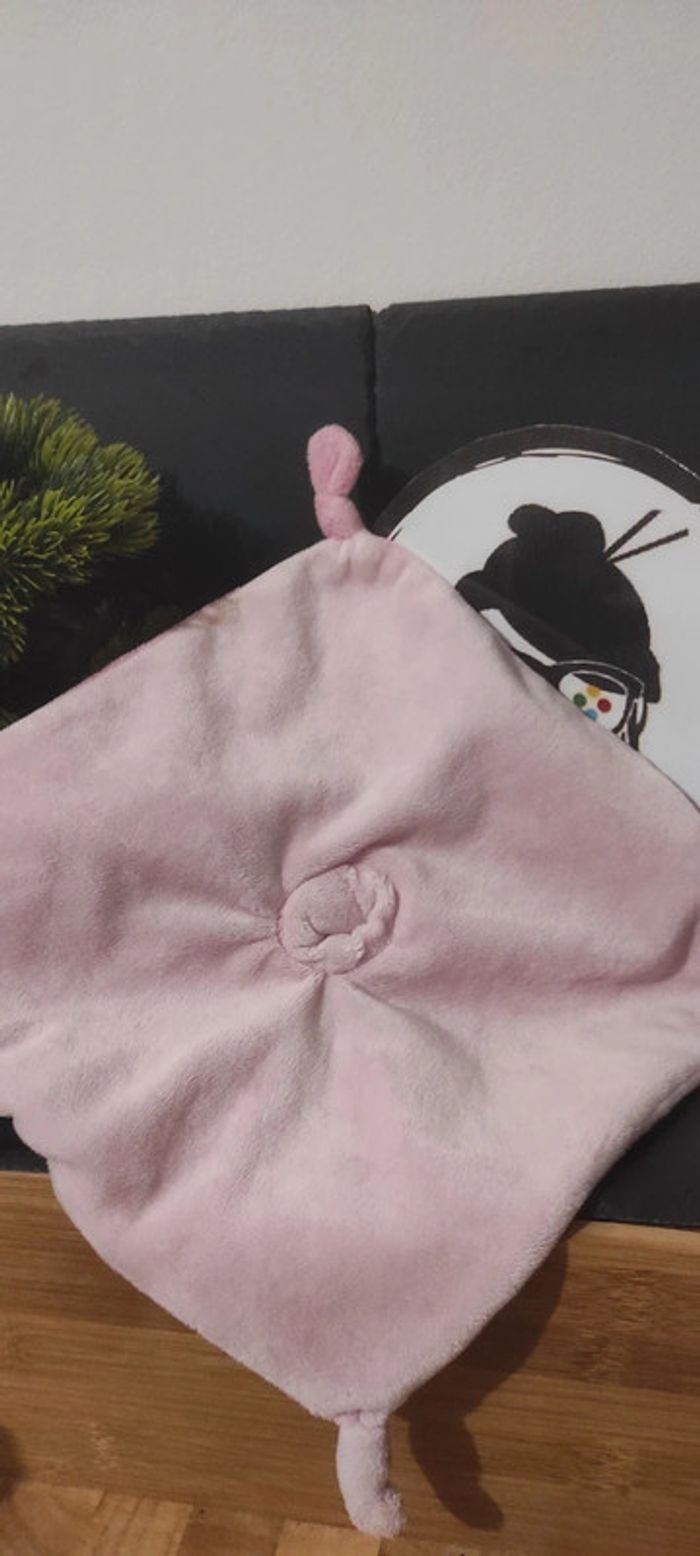 Doudou Chat Tigré Plat Rose Cœur nœud kimbaloo La Halle Gris Carré Plat - photo numéro 2