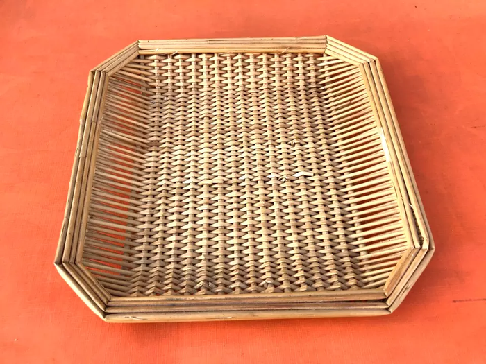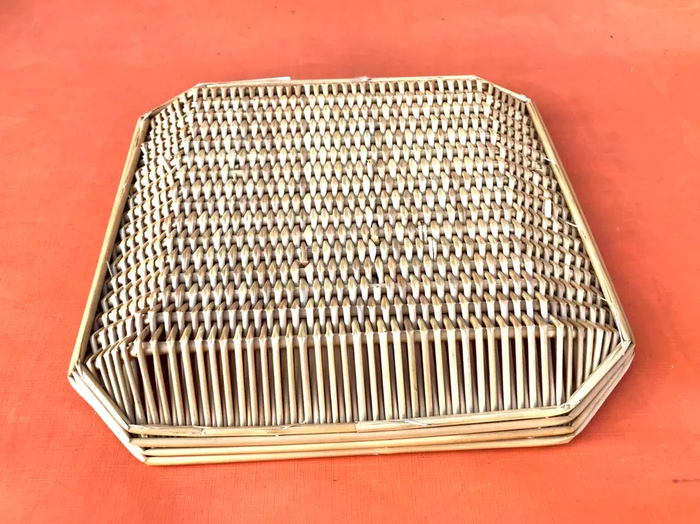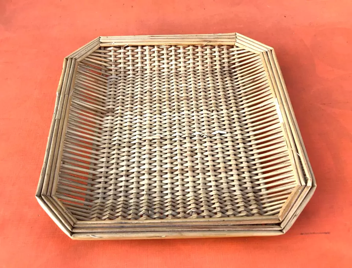 (article vendu en l' état, état d' usage voir toutes les photos) Plateau / Corbeille Osier tressé Longueur : 255mm Largeur : 255mm Hauteur : 35mm Poids : 65grs