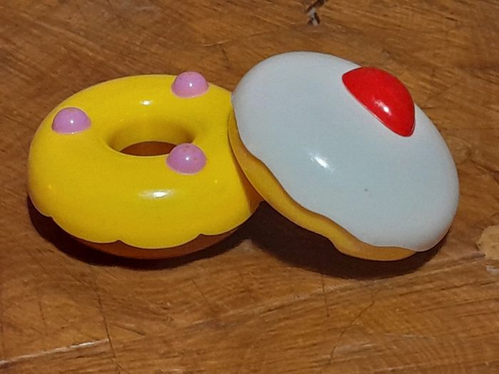 Lot de 2 gâteaux en plastique. Accessoires pour dînette bon état. Vendus comme sur les photos. Traces d'utilisation possible. Consultez mes autres annonces, création de lot possible sur simple demande .🙂