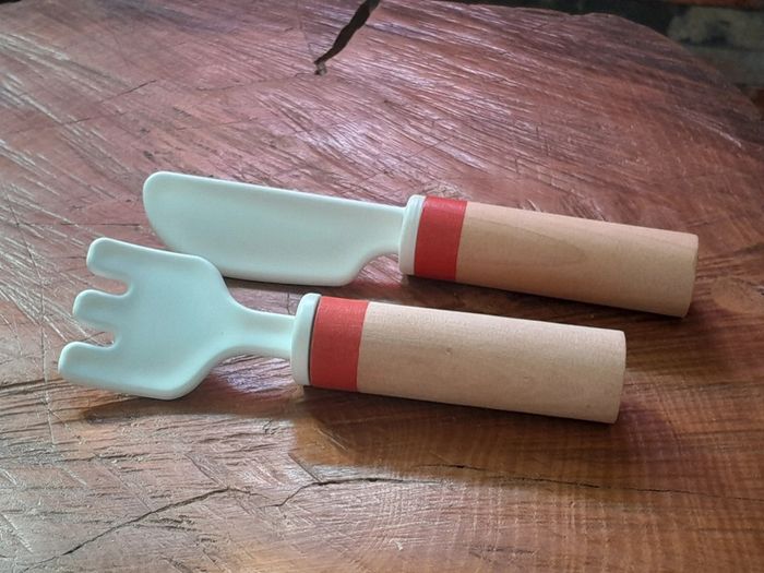 Couverts en bois et plastique. Accessoires pour dînette bon état. Vendus comme sur les photos. Traces d'utilisation possible. Consultez mes autres annonces, création de lot possible sur simple demande .🙂