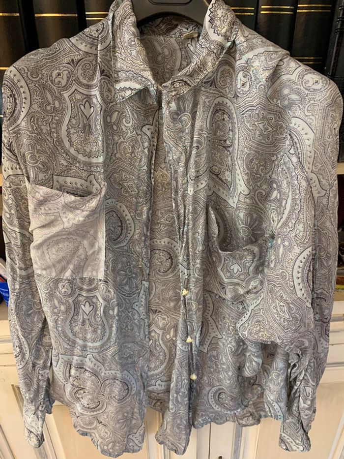 Chemise voile de soie Ton gris bleu Taille 40