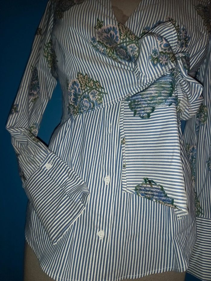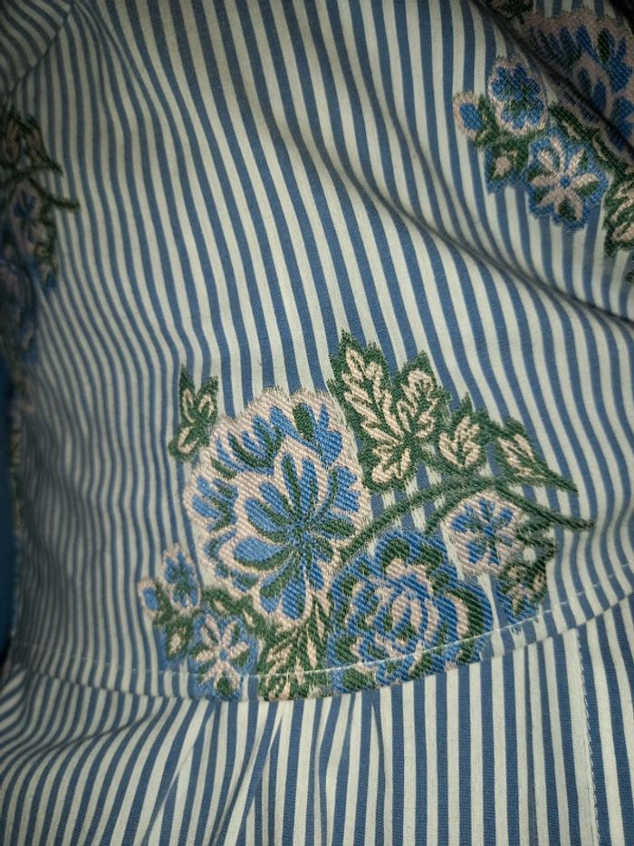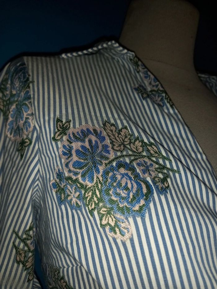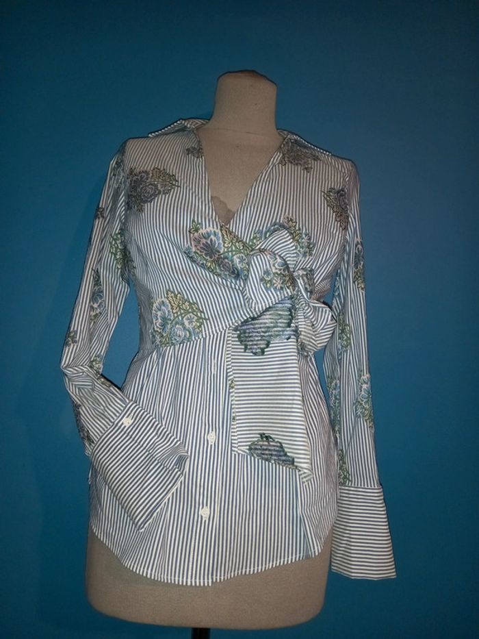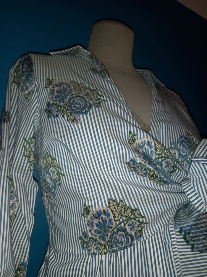 Chemisier Zara très originale et jolie Taille S A nouer sur le côté avant gauche Chemise rayée avec broderies florales Manches longues