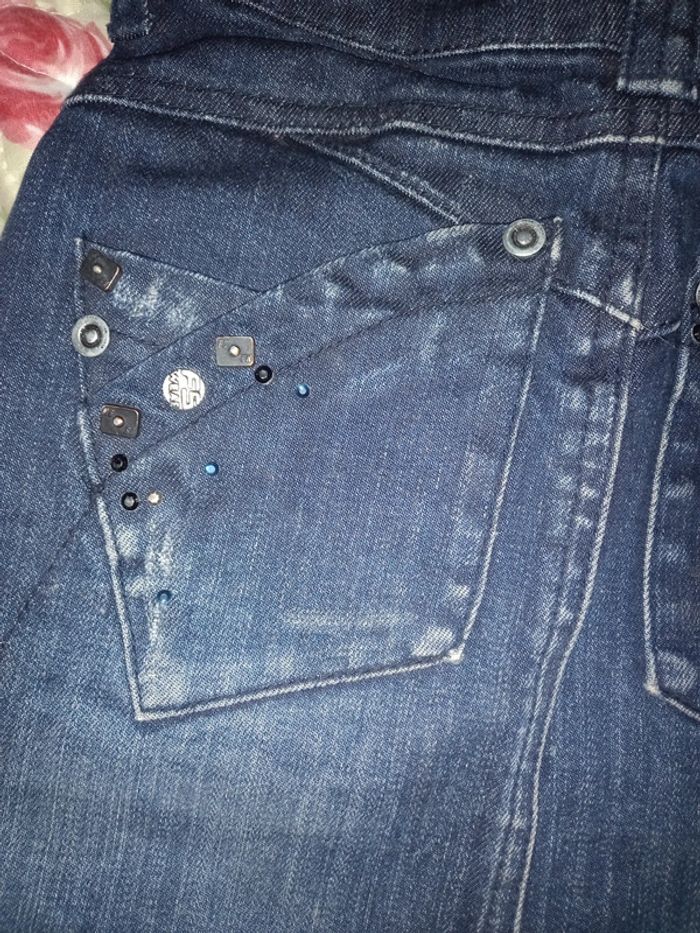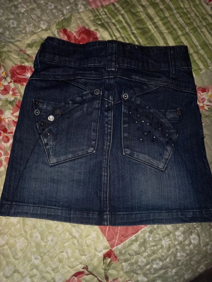 Jupe jean 6 ans Normalement c'est la marque orchestra mais l'étiquette a été découpé ⚠️ il manque quelques strass à l'avant au niveau des poches et à l'arrière également voir photos