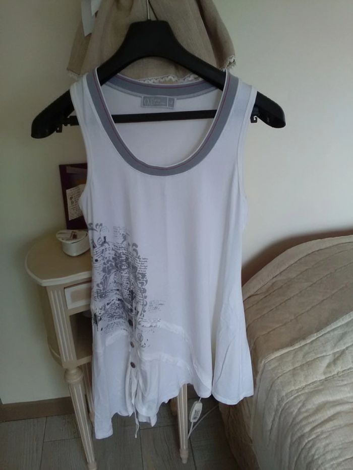 Sur robe DECA Jersey blanche dessin noir taille 2 noire et blanche très bon état.