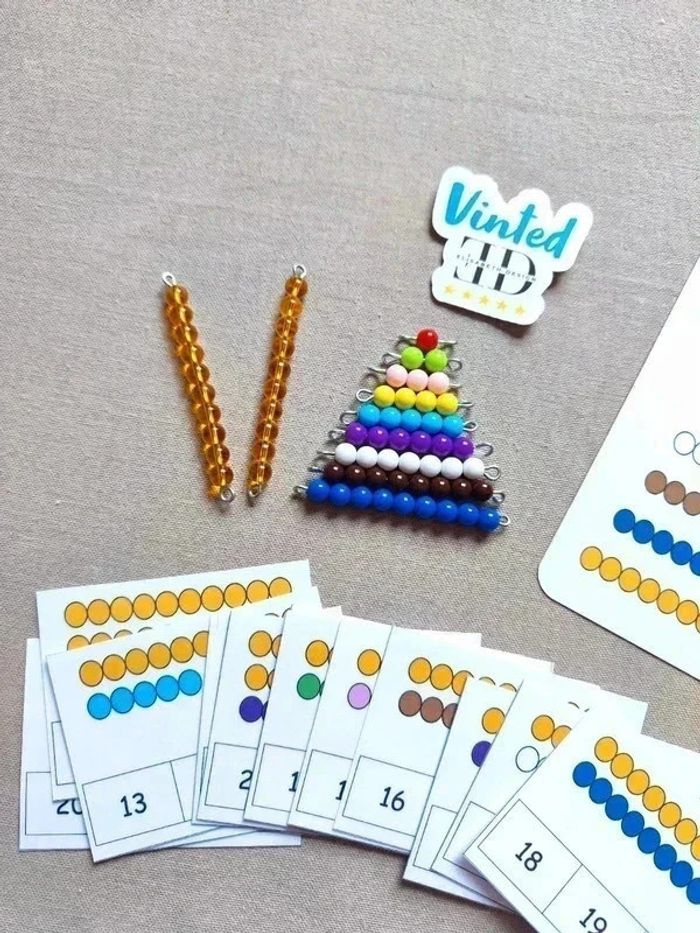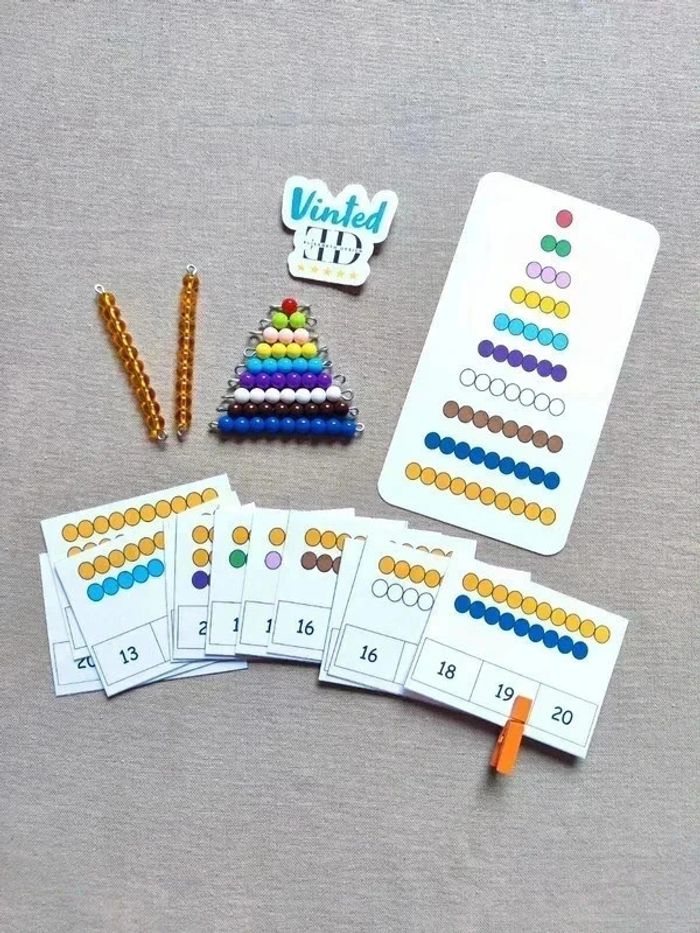 📍Kit de dénombrement. 📍16 cartes à pince + pince 📍9 rangées de perles colorées. 📍2 rangées de perles jaunes en verre. 📍1 fiche escalier de perles. 📍Papier 250G plastifié pour une bonne tenue ! 📍Neuf. 👉Pour trouver d'autres activités c'est par ici : 🔎#elisabethdesignCompter 📫⏳ Envoi rapide et soigné le jour même de l'achat dans la mesure du possible! 🤝 Frais de port ajusté au plus bas. Ref : #7-Compter