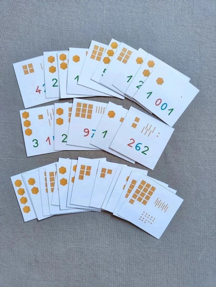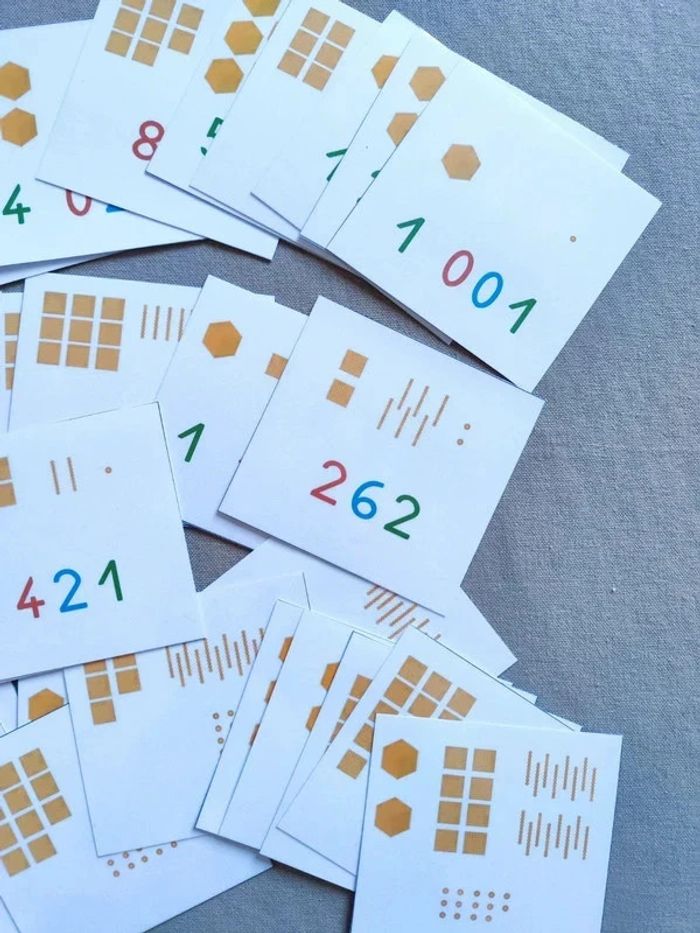 📍66 cartes de numération des perles. 📍Pour apprendre le comptage et retrouver les paires. 📍Papier 250G plastifié pour une bonne tenue ! 📍Neuf. 👉Pour trouver d'autres activités c'est par ici : 🔎#elisabethdesignCompter 📫⏳ Envoi rapide et soigné le jour même de l'achat dans la mesure du possible! 🤝 Frais de port ajusté au plus bas.