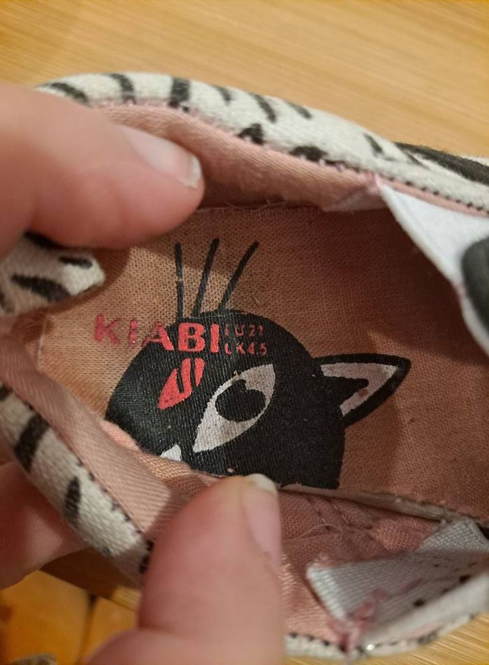 trop mignons ces petits zebres!! kiabi pointure 21 léger défaut à mentionner: la semelle en tissu a légèrement tendance a se décoller dans l'une des chaussures: elle peut être enlevée sans souci pour la marche puisqu'il y a la vraie semelle épaisse en dessous