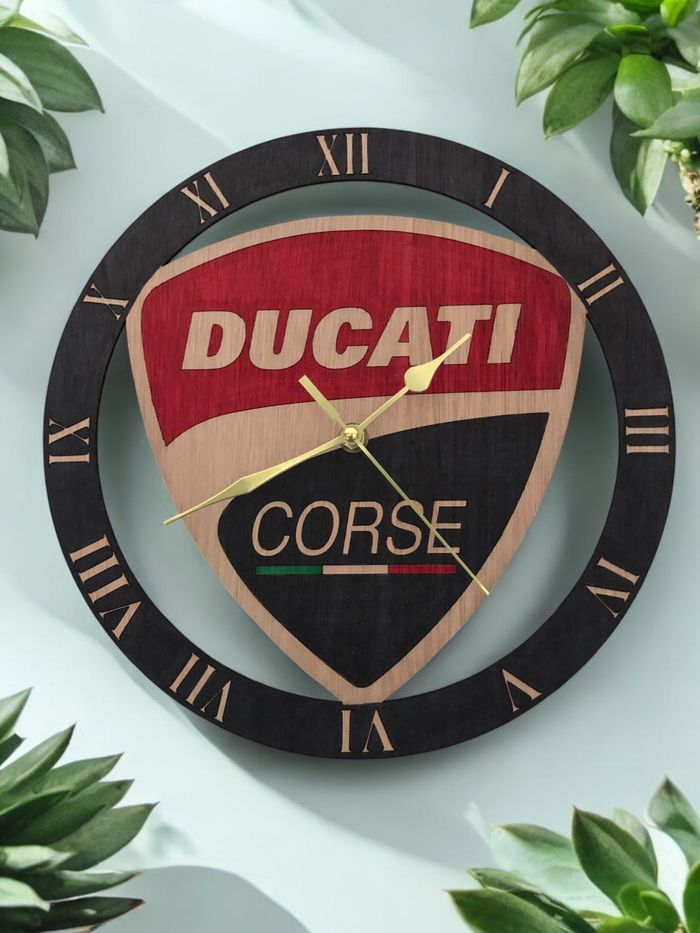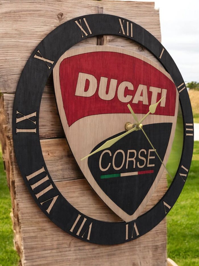 Horloge en bois Ducati neuve avec mécanisme, diamètre 29 cm, fabriqué en découpe laser