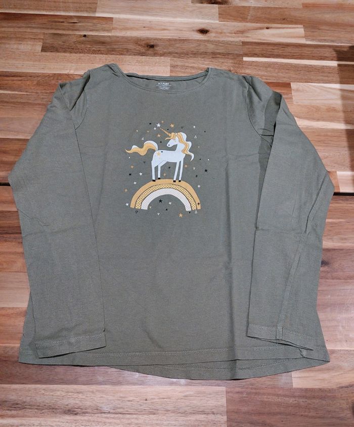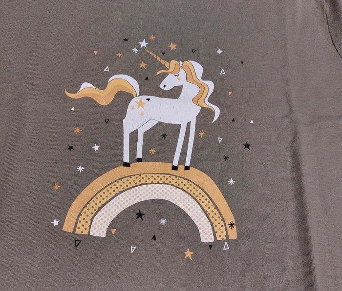 #laetitia8110filleT12ans T-shirt kaki avec une licorne.