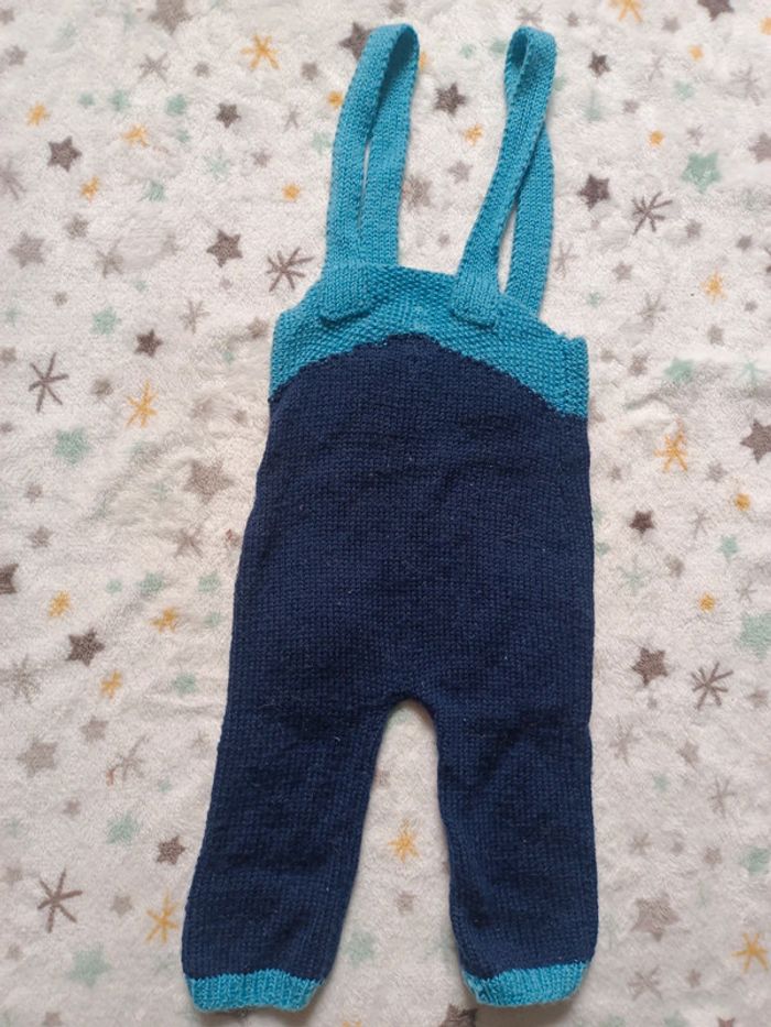 Salopette en laine, fait main. Bleu marine et bleu clair. Très peu porté, correspond à du 3/6 mois environ. G95