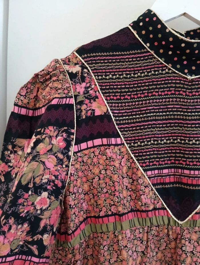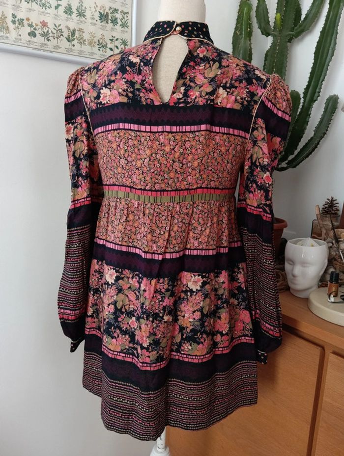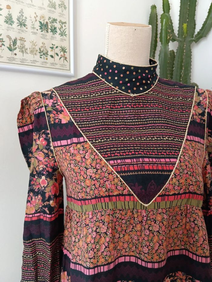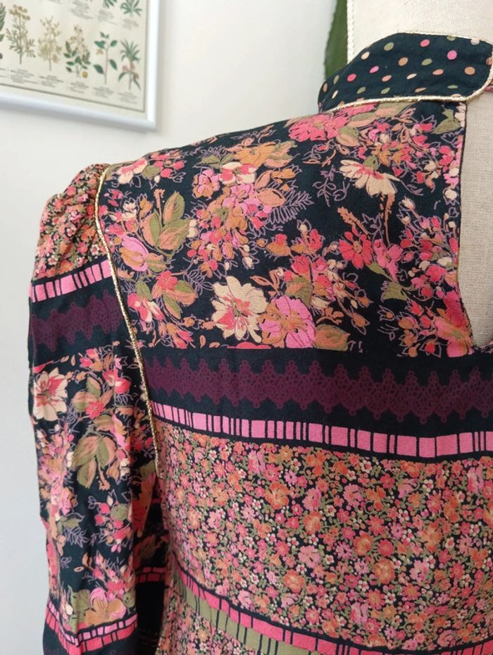Blouse tunique vintage noire et fleurie - photo numéro 9