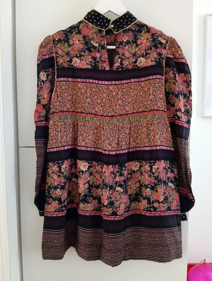 Blouse tunique vintage noire et fleurie - photo numéro 1