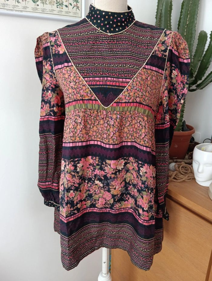 Blouse tunique vintage noire et fleurie - photo numéro 2