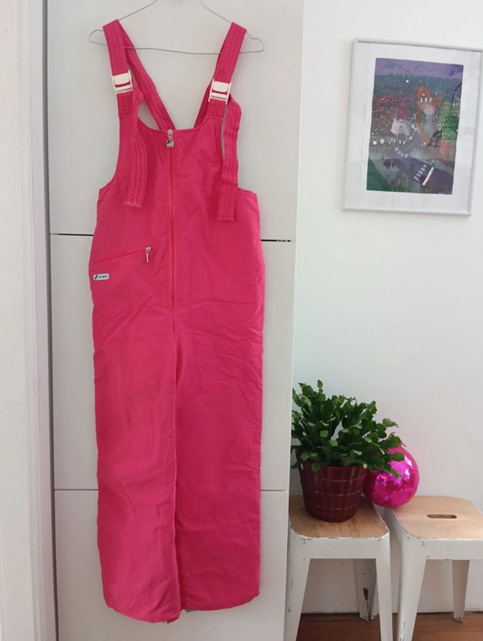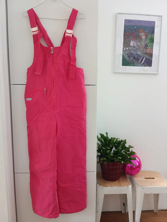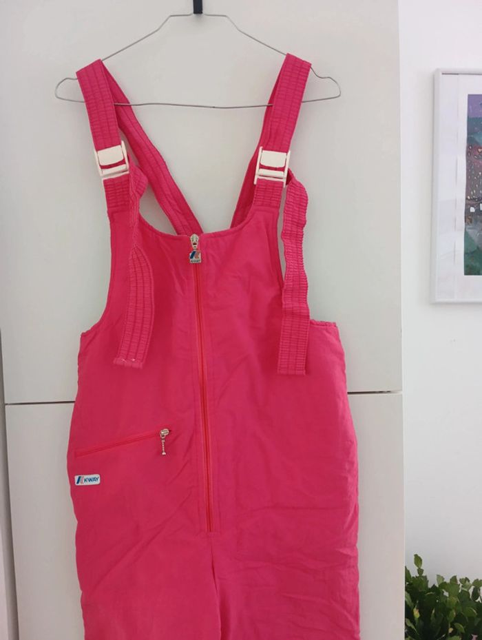 Salopette rose, de ski/sports d'hiver. K-Way. Bas élastiqué. Les bretelles ne sont plus élastiques, la taille non plus, Très jolie, le tissus est en parfait état Mesures aisselles 42cm Taille 42cm