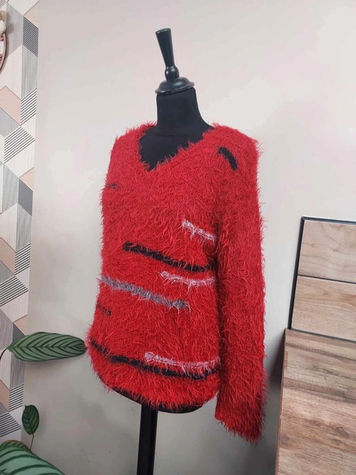 Joli pull rouge Lauramé effet poils - photo numéro 1