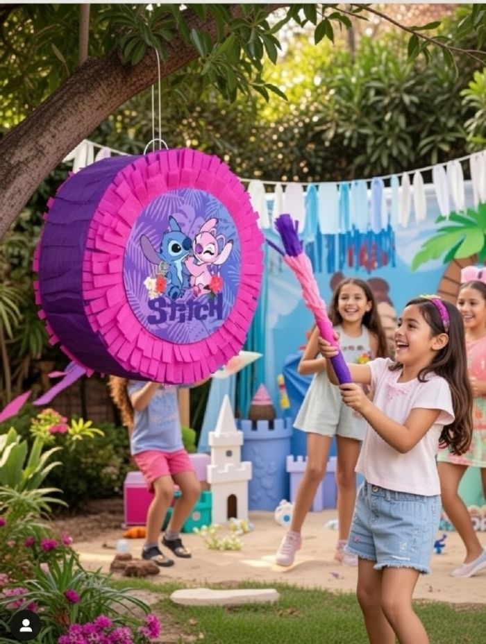 Pinata Stitch Dimensions 25cm de diamètre. Elle contient une trappe pour la remplir et un crochet pour la suspendre. Envoi rapide et soigné. Pinata à casser : Pinata de 25cm x13cm sans bâton Prix, 11e Pinata de 25cm x13cm avec bâton, masque... Prix, 15e. Pinata de 30cm x13cm sans bâton Prix, 15e Pinata de 30cm x13cm avec bâton, masque. Prix, 20e. Bâton en bois multicolore mesure 40cm Piñatas à ficelles : Environ 15 ficelles multicolore. La pinata ne se détruit pas. Vous pouvez la garder comme souvenir ou la réutiliser. Idéal pour les plus petits ou les petits espaces. Elle contient une trappe pour la remplir et un crochet pour la suspendre, plus une trappe plus grande pour les ficelles. Pinata de 25cm de diamètre x13cm avec ficelles. Prix, 15e. Pinata de 30cm de diamètre x 13cm avec ficelles. Prix, 20e. D'autres articles disponibles. Invitations à remplir Invitations à personnaliser. Cake topper /décoration gâteau personnalisé. #anniversaire #anniversaireenfant #anniversairestitch #pinata #stitch #liloetstitch #stitchetangel #decorationfete #decorationanniversairestitch #cadeaufille #anniversairefille #cadeaupersonnalise #pinatastitch #happybirthday #stitchetangelpinata #decorationgâteaustitch