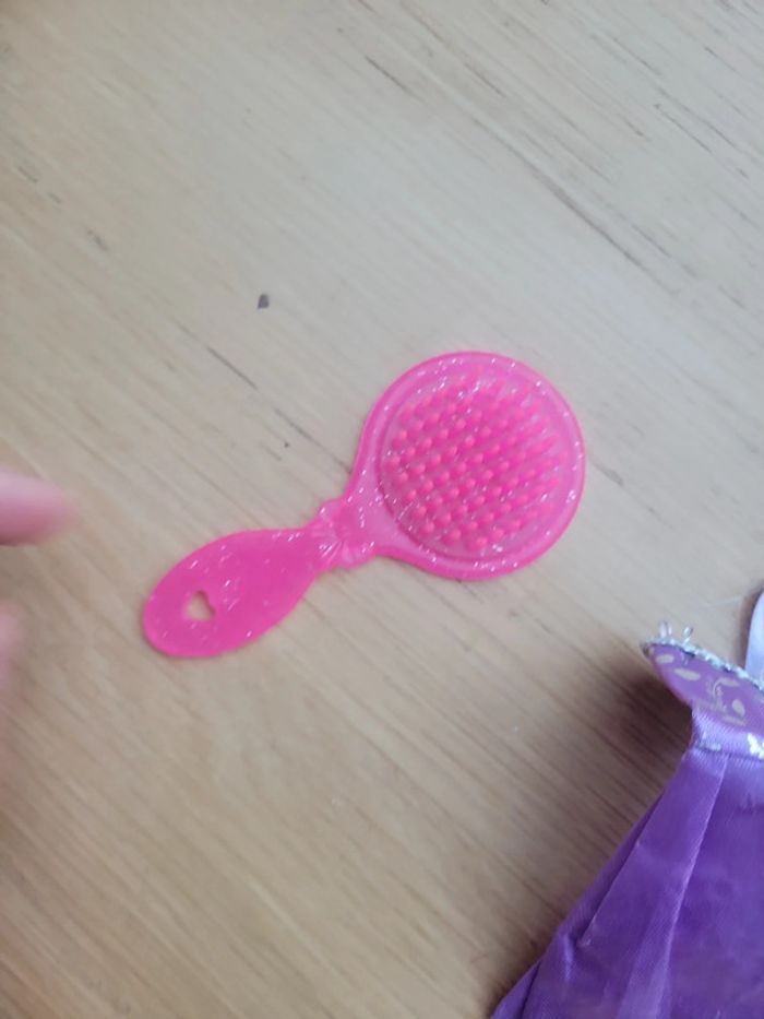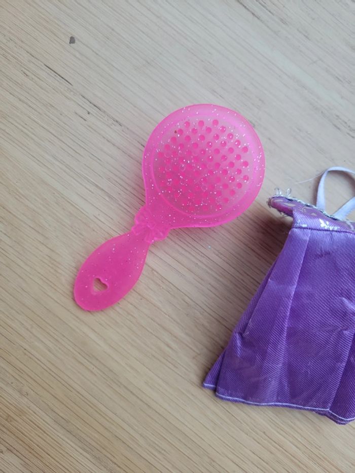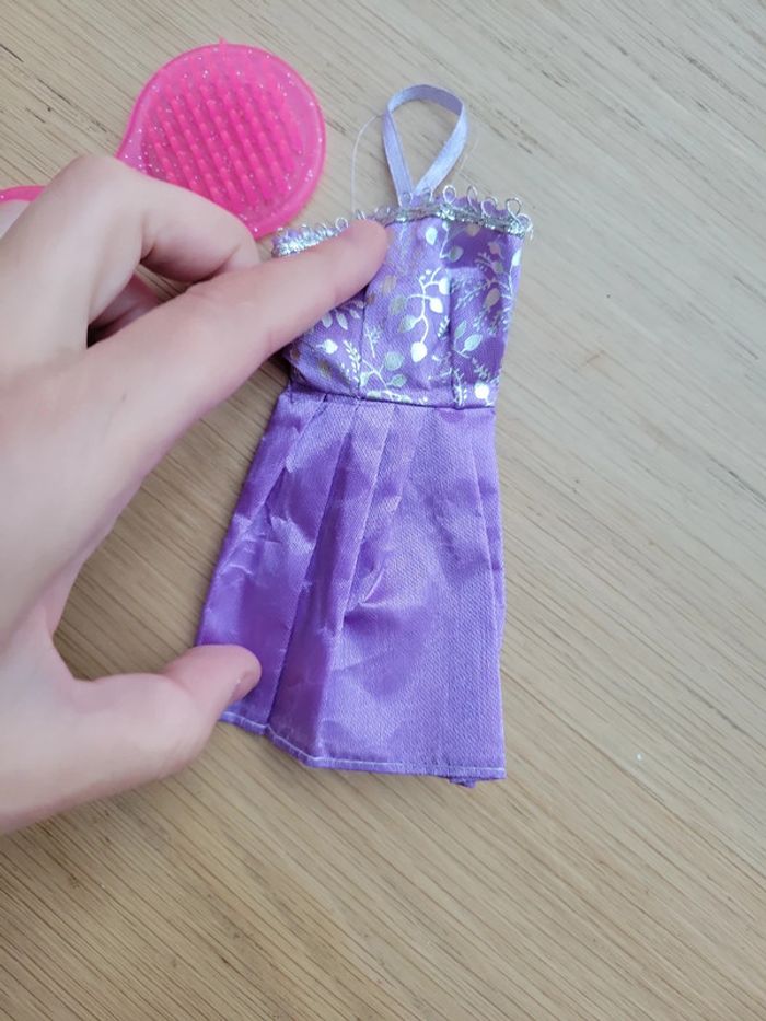 Lot accessoires pour poupée de type barbie robe et brossé rose cœur - photo numéro 4