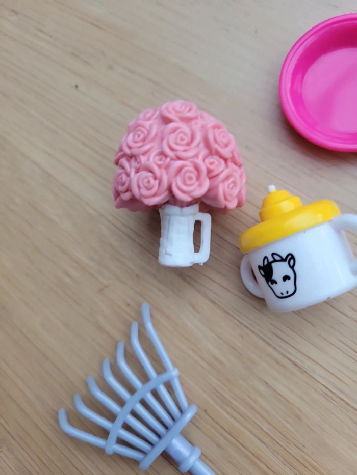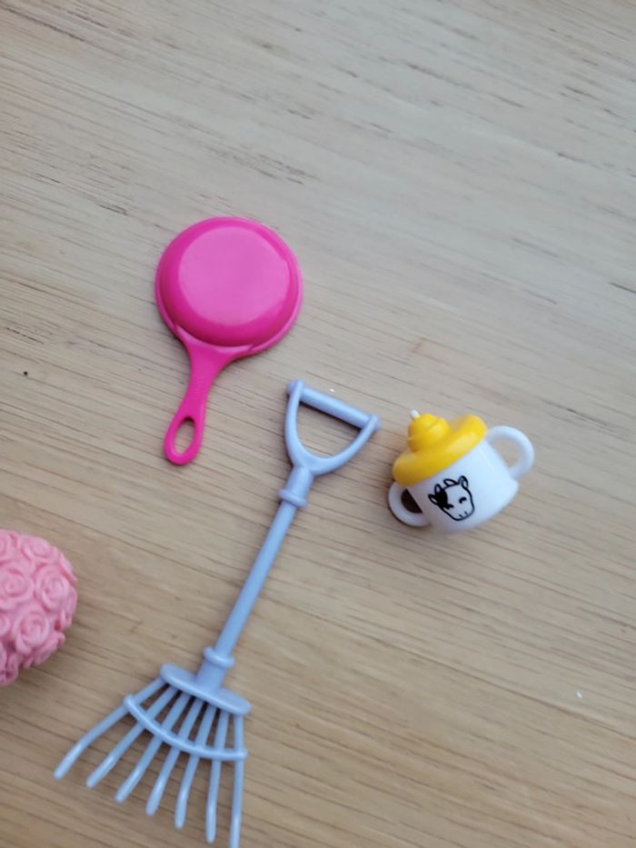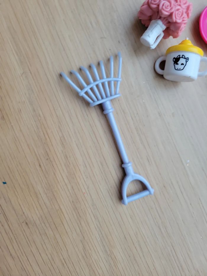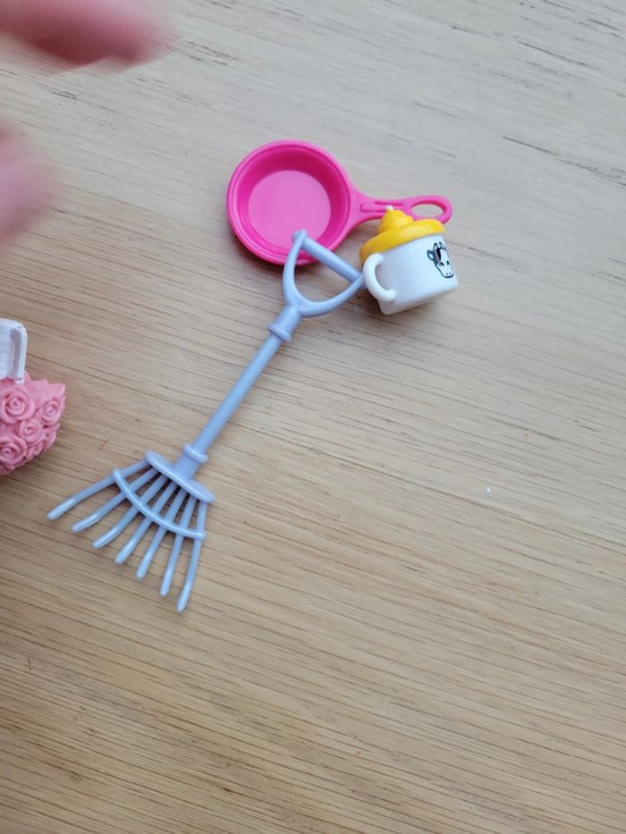 Lot Jouet pour poupée type barbie accessoires poile râteau bouquet de fleurs - photo numéro 9