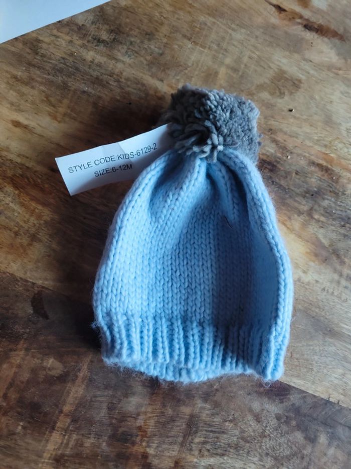 Bonnet bleu effet maille pompon 6 12 mois - photo numéro 1