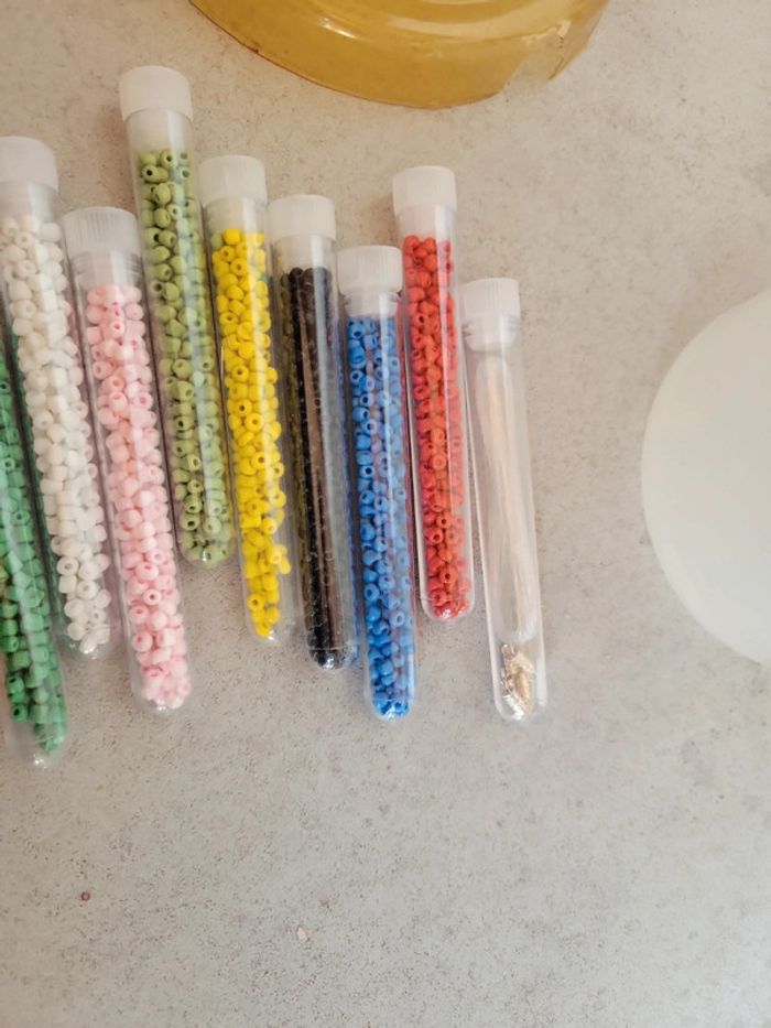 Bonjour Neuf Les perles sont grand format ideal pour lapprentissage des 6 ans ! Vendu avec un seau pour que rien ne se perde apres ouverture