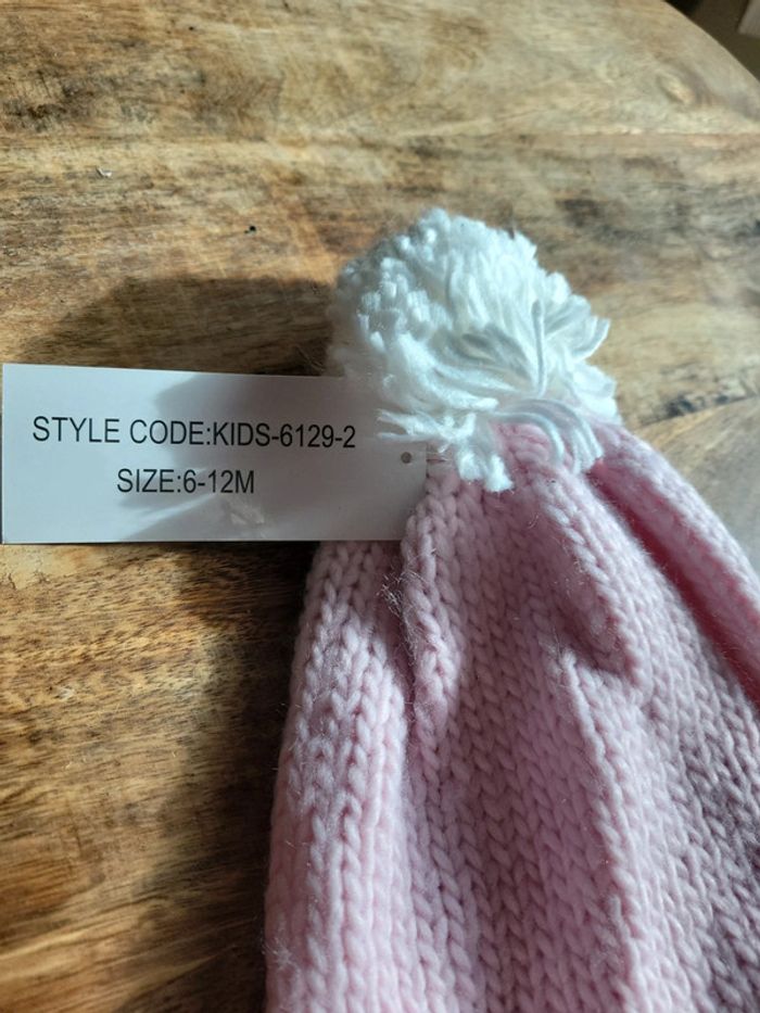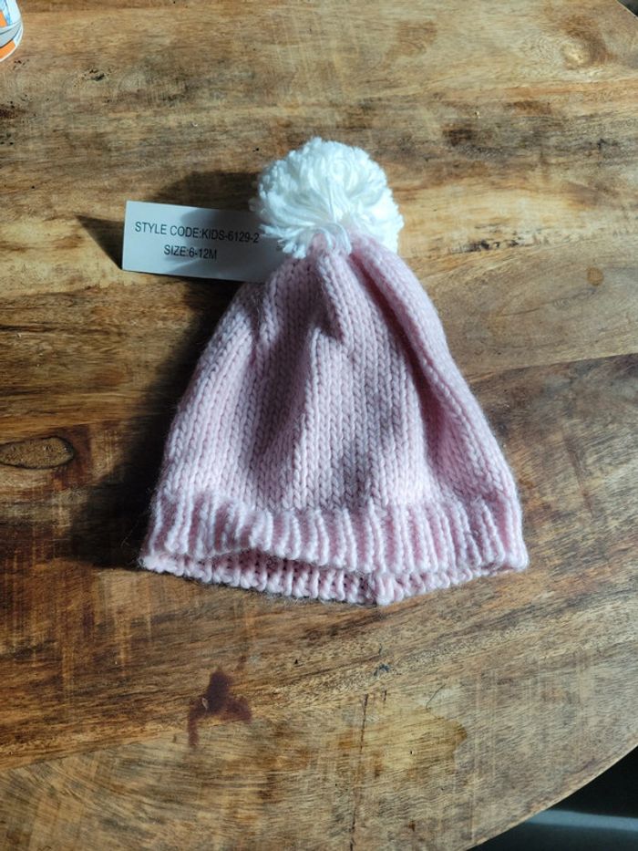Bonnet rose pompon blanc taille 6 12 mois enfant - photo numéro 1