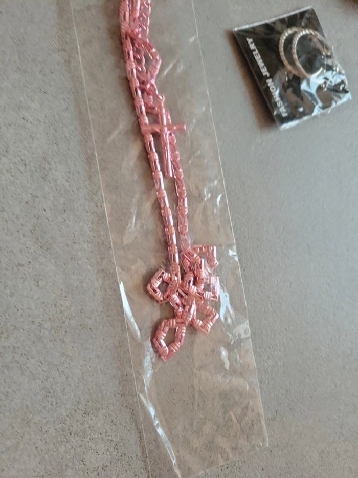 Lot bijoux rose et argenté boucles d'oreilles sautoir collier créatifs et charme cœur k3 - photo numéro 5