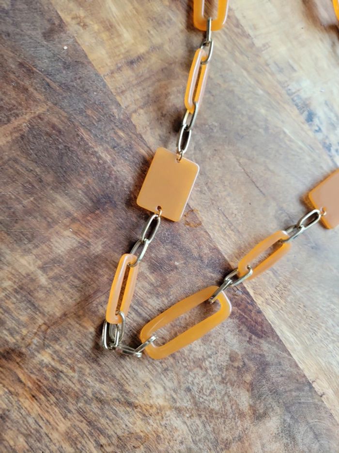Collier sautoir marron beige orange dorée - photo numéro 1