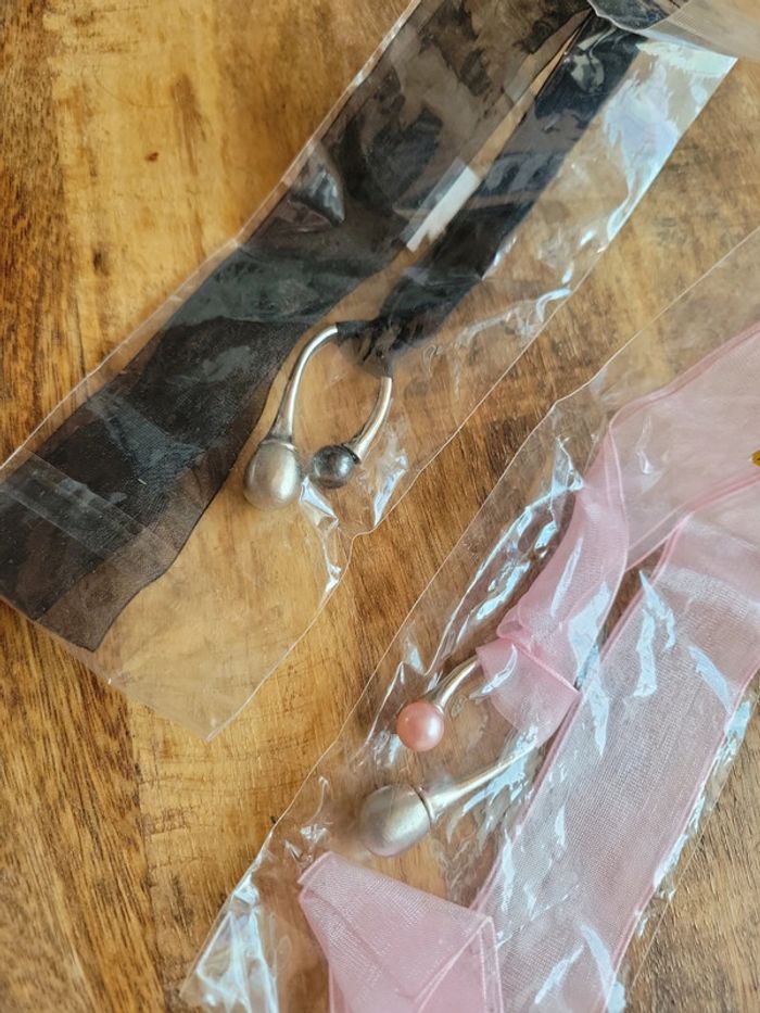 Lot collier ruban avec pendentif perle en forme de goûté grappe - photo numéro 6