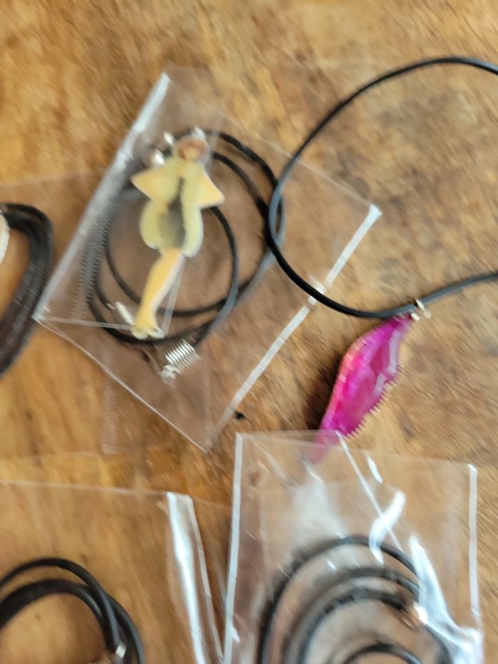 Gros lot collier noir avec pendentif aile ou cœur ou femme personnage - photo numéro 3