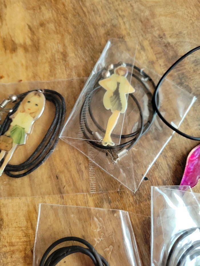 Gros lot collier noir avec pendentif aile ou cœur ou femme personnage - photo numéro 6