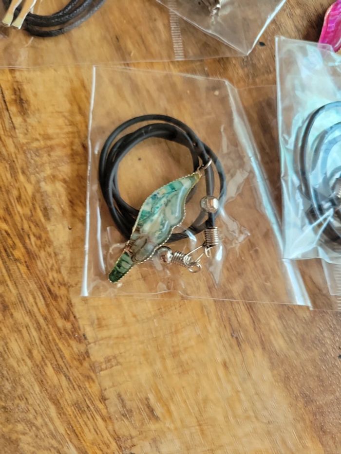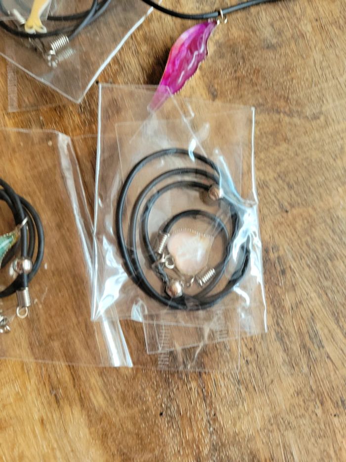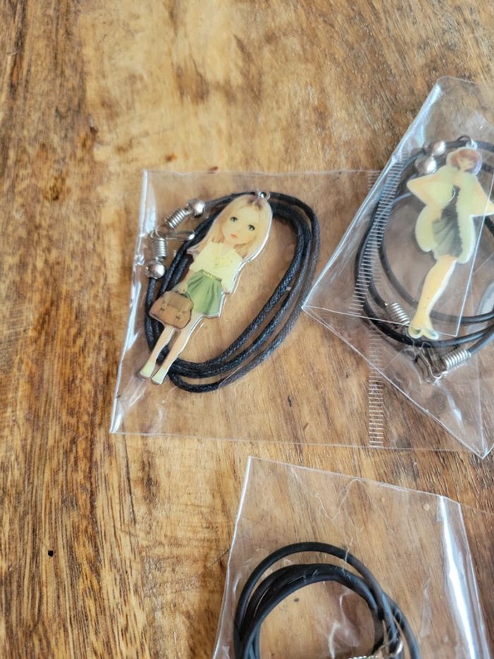 Gros lot collier noir avec pendentif aile ou cœur ou femme personnage - photo numéro 7