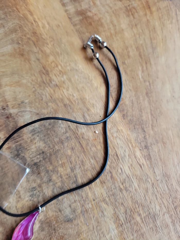 Gros lot collier noir avec pendentif aile ou cœur ou femme personnage - photo numéro 4