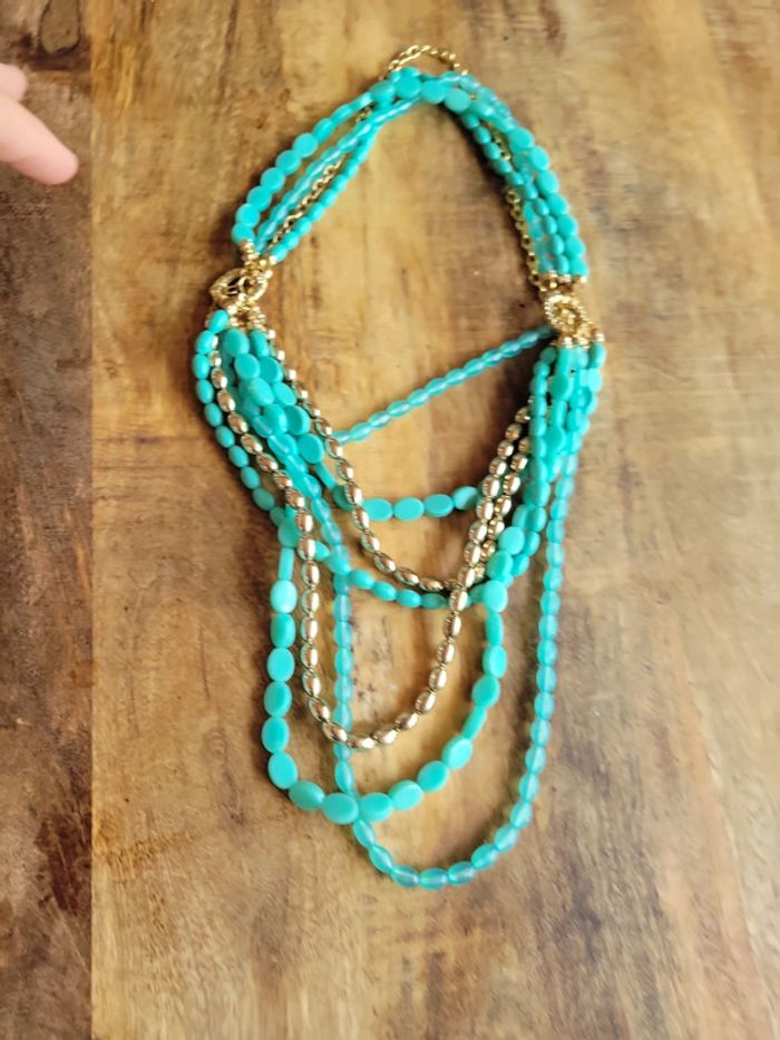 Collier perles turquoise doré plusieurs possibilité de le porter - photo numéro 1
