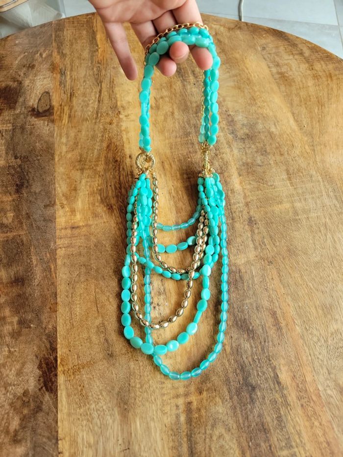 Collier perles turquoise doré plusieurs possibilité de le porter - photo numéro 3