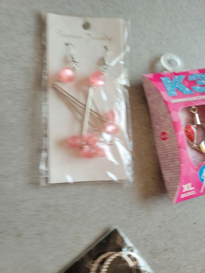 Lot bijoux rose et argenté boucles d'oreilles sautoir collier créatifs et charme cœur k3 - photo numéro 2