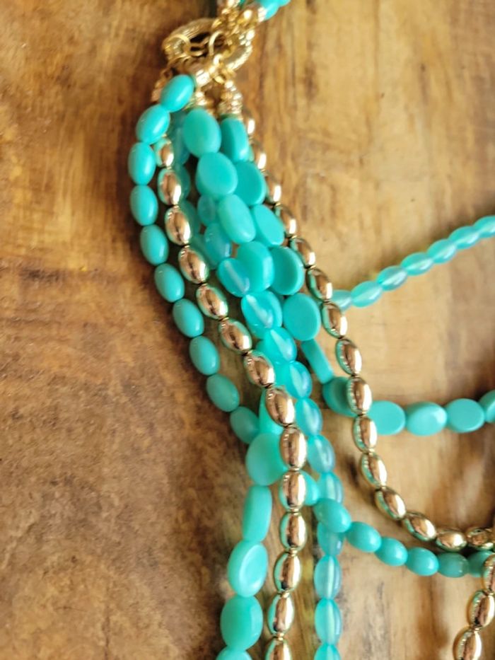 Collier perles turquoise doré plusieurs possibilité de le porter - photo numéro 3