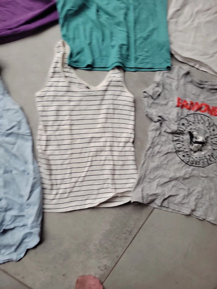 Bonjour Vêtement d'occasion de différentes marques et forme : sans manche manche courte etc Pour femme de taille S Profitez des réductions automatiques des 5 articles dans le panier (hors annonce ou ma réduction ne s'applique pas) Merci a vous