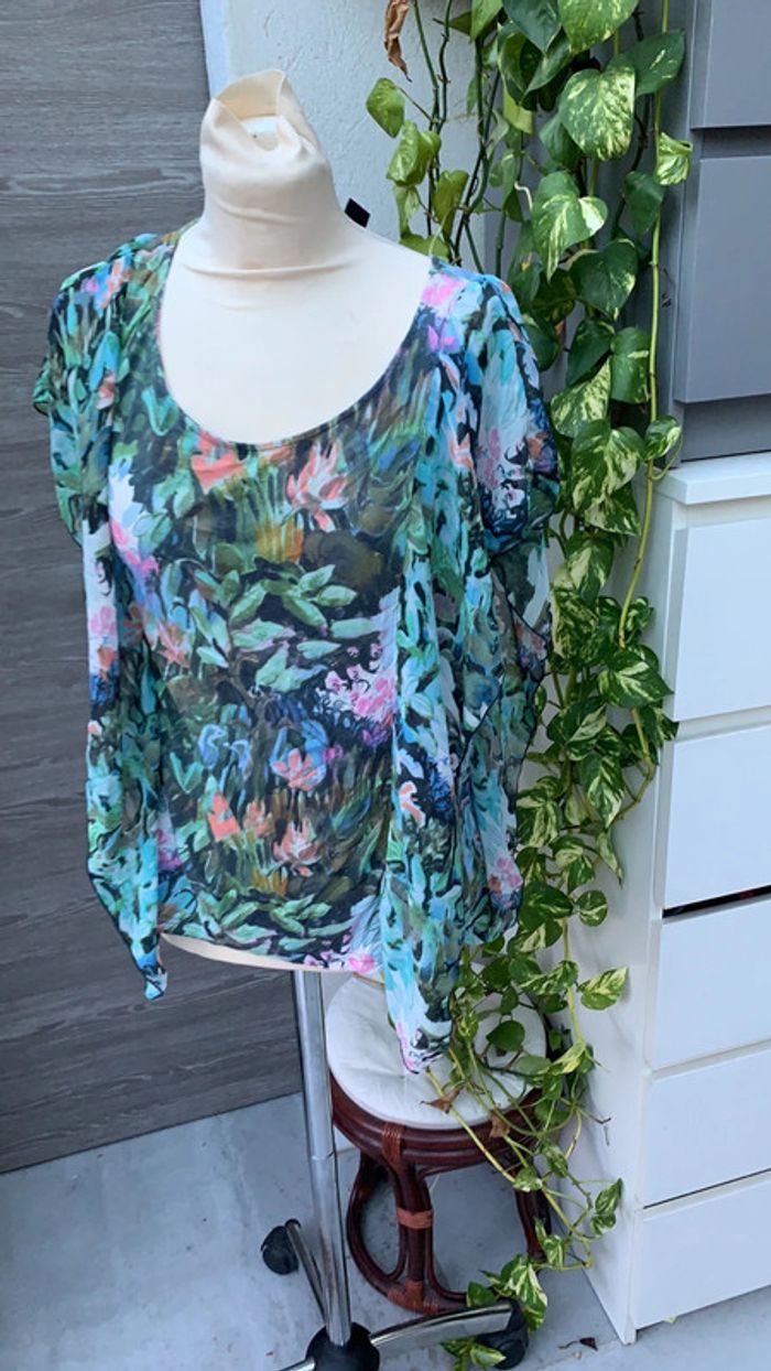 T shirt long  taille L motif fleural - photo numéro 1