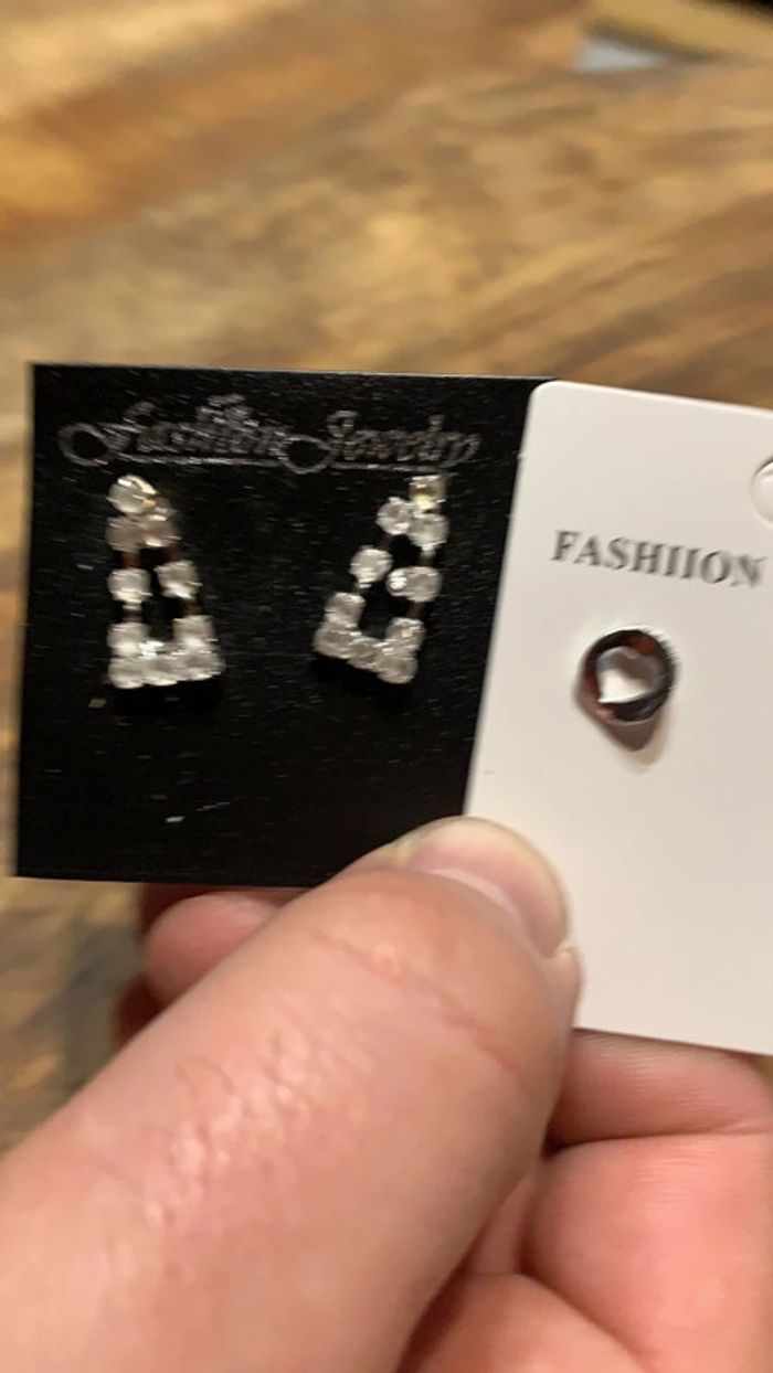 Lot paire de boucles d’oreilles pendentif strass cœur argenté - photo numéro 4