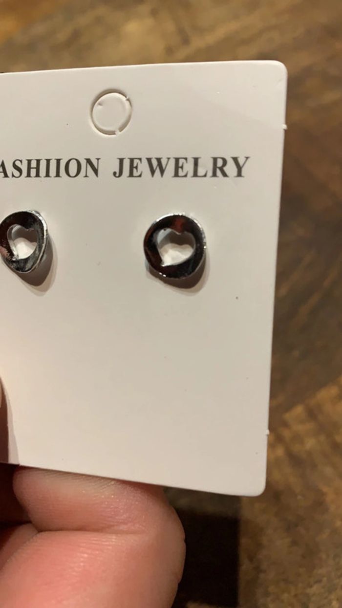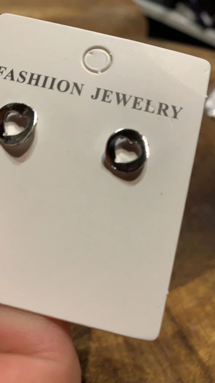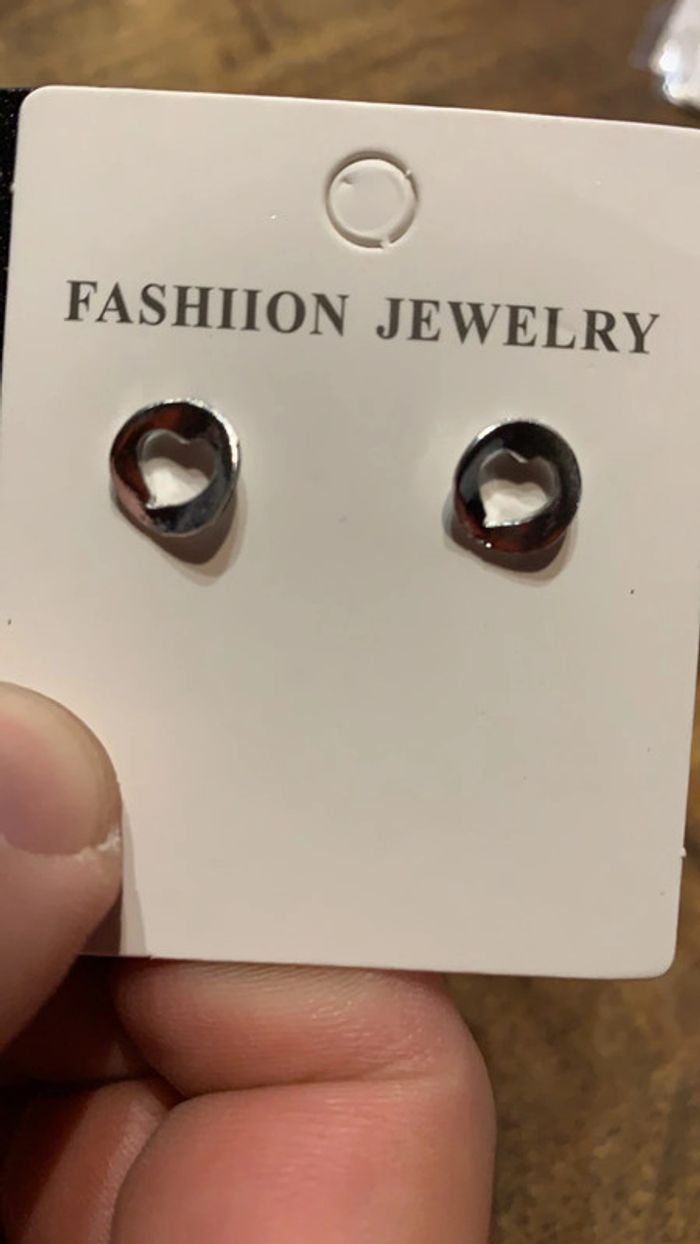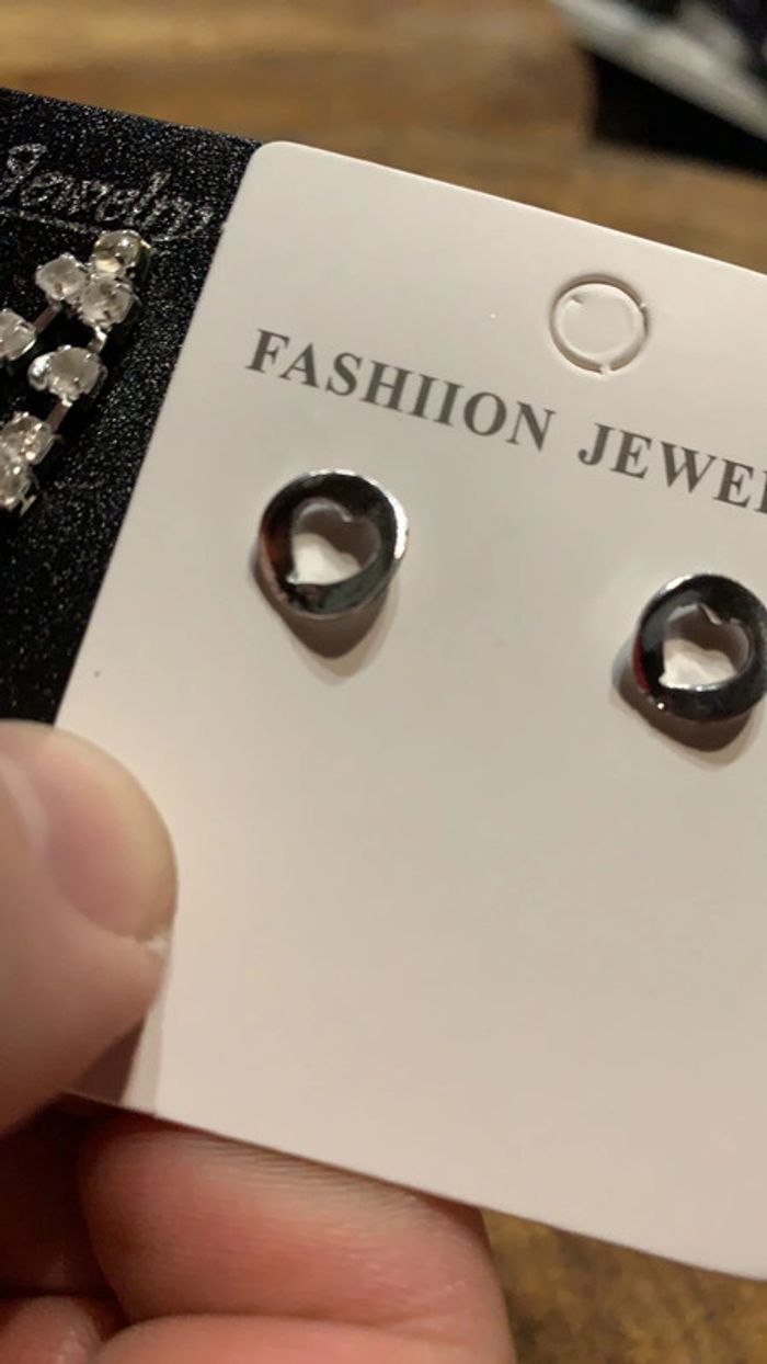 Lot paire de boucles d’oreilles pendentif strass cœur argenté - photo numéro 8