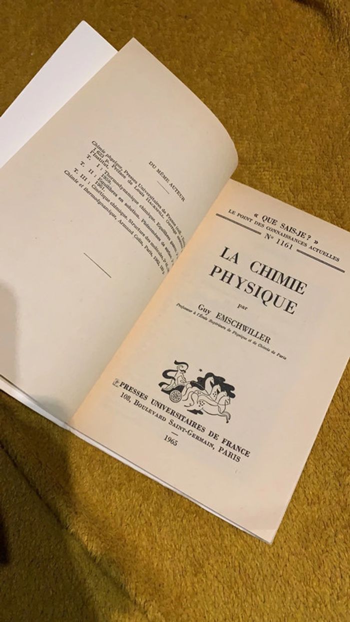Bonjour Livre qui sais je En très bonne état la chimie physique