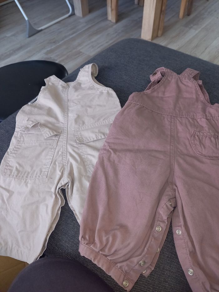 Lot de 2 salopettes : une beige Petit Bateau et une violine DPAM.