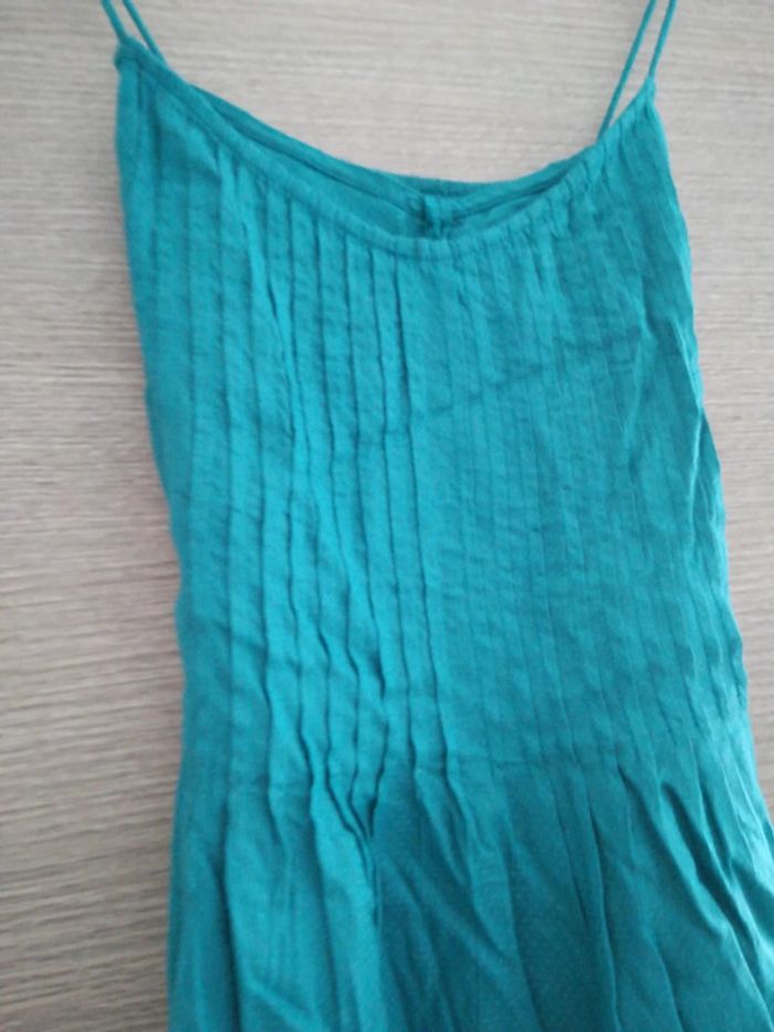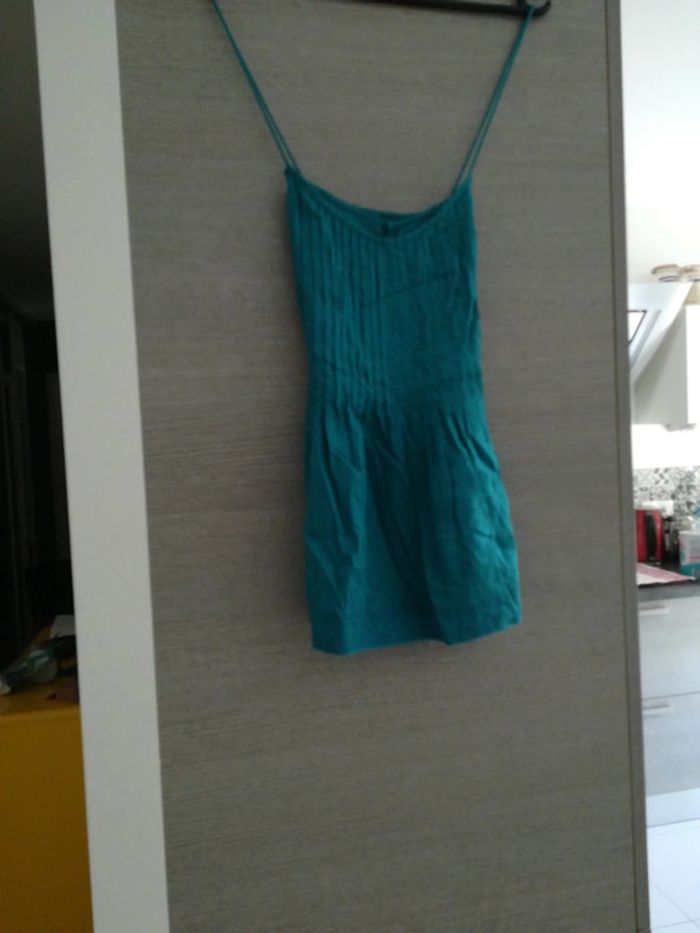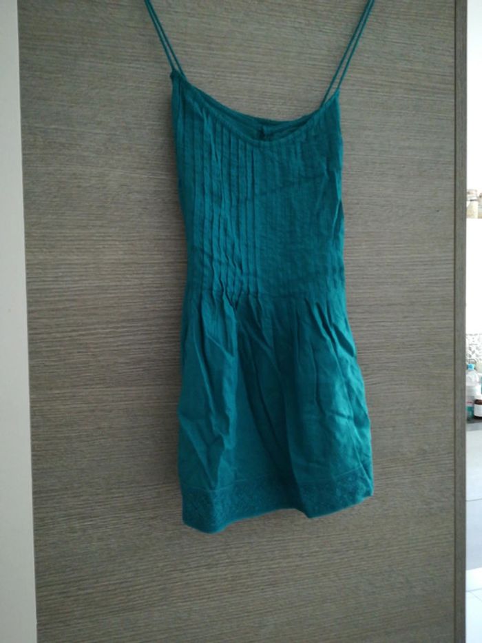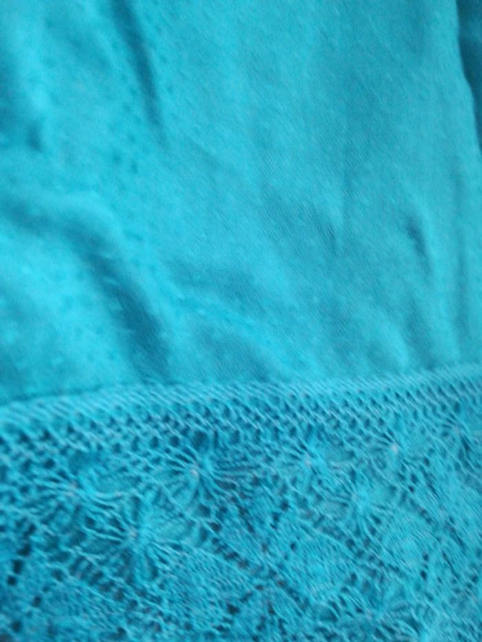 Débardeur bleu, peu porté. Dos croisé. Etam. Taille 38. Jolis détails en bas.