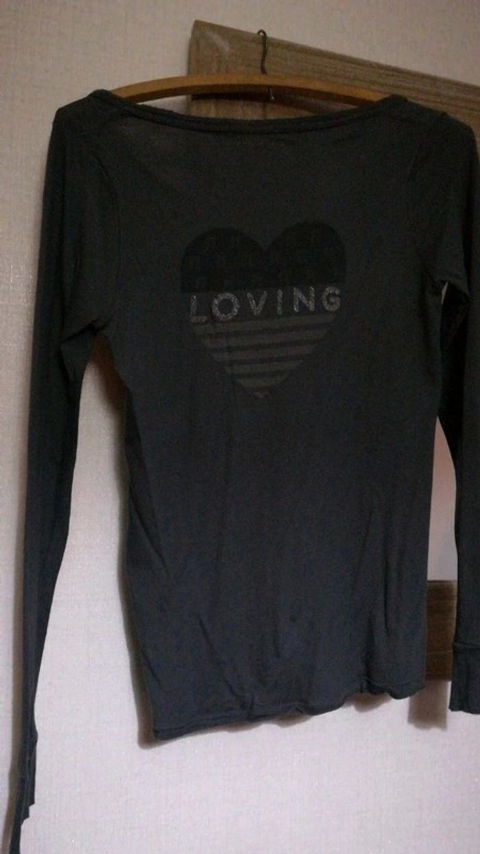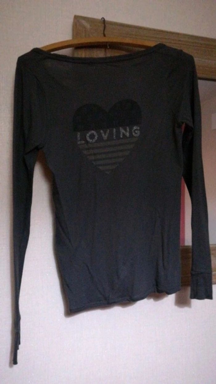 T-shirt manches longues, berenice, avec cœur "loving" au dos, taille s, peu portée.
